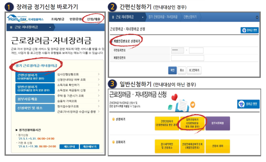 만약 근로장려금 정기신청일인 5월 기간내에 신청을 못하는 경우에도, 신청은 11월 30일까지 신청은 가능합니다. 단, 산정금액의 90%만 지급되기 때문에 서둘러 신청하는 것을 권유합니다.