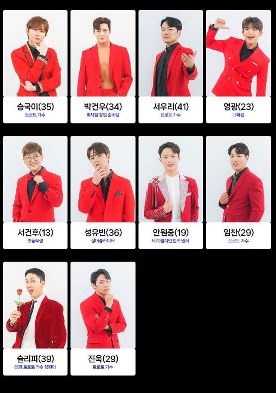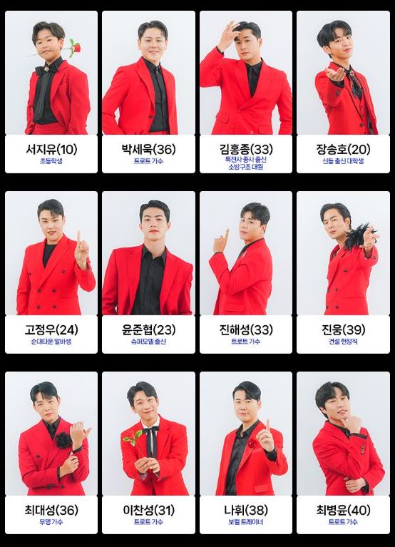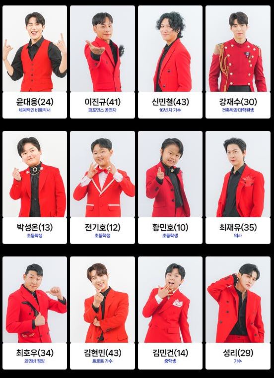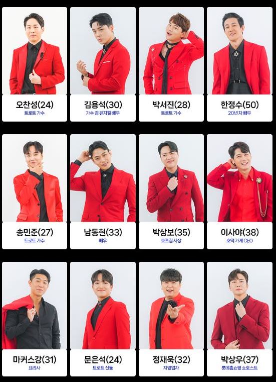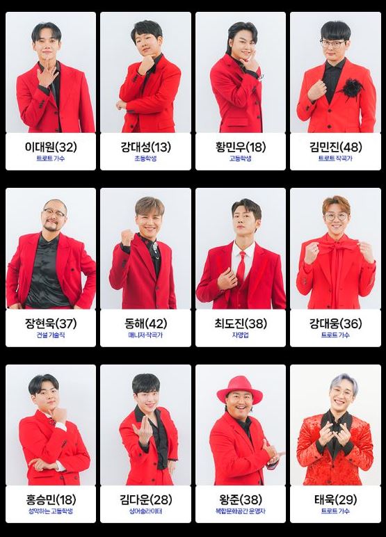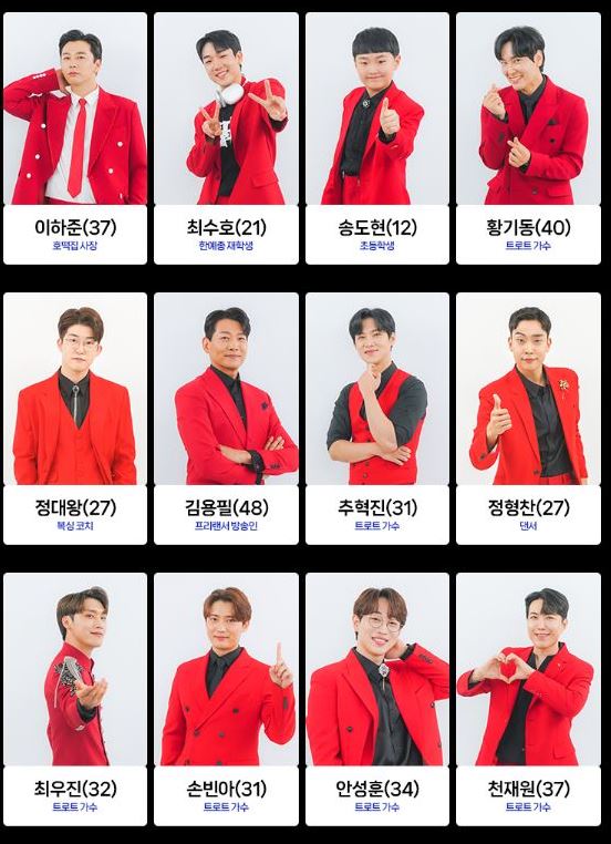 트로트 가수 노지훈, 재하 등도 도전하며 봅슬레이 국가대표 강한, 개그맨 손헌수, 가수 더레이, 가수 성민, 업텐션 멤버 선율, 래퍼 슬리피, 자영업자, 쇼호스트, 아나운서, 초등학생, 슈퍼모델 출신 등 다양한 직업군이 최종 참가자로 나섭니다.